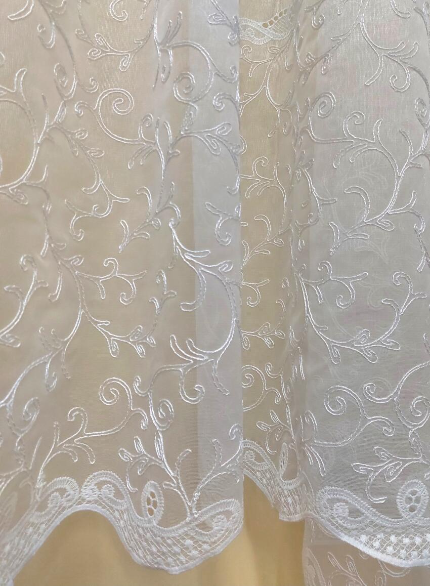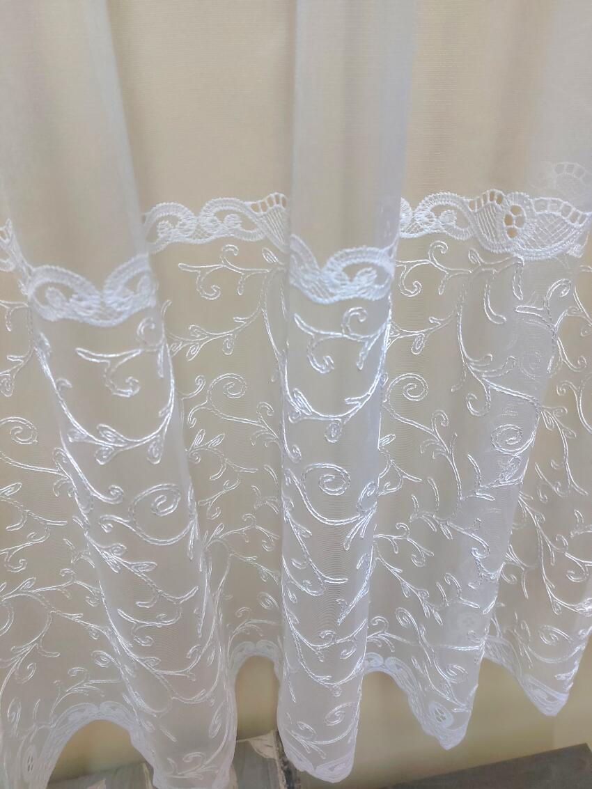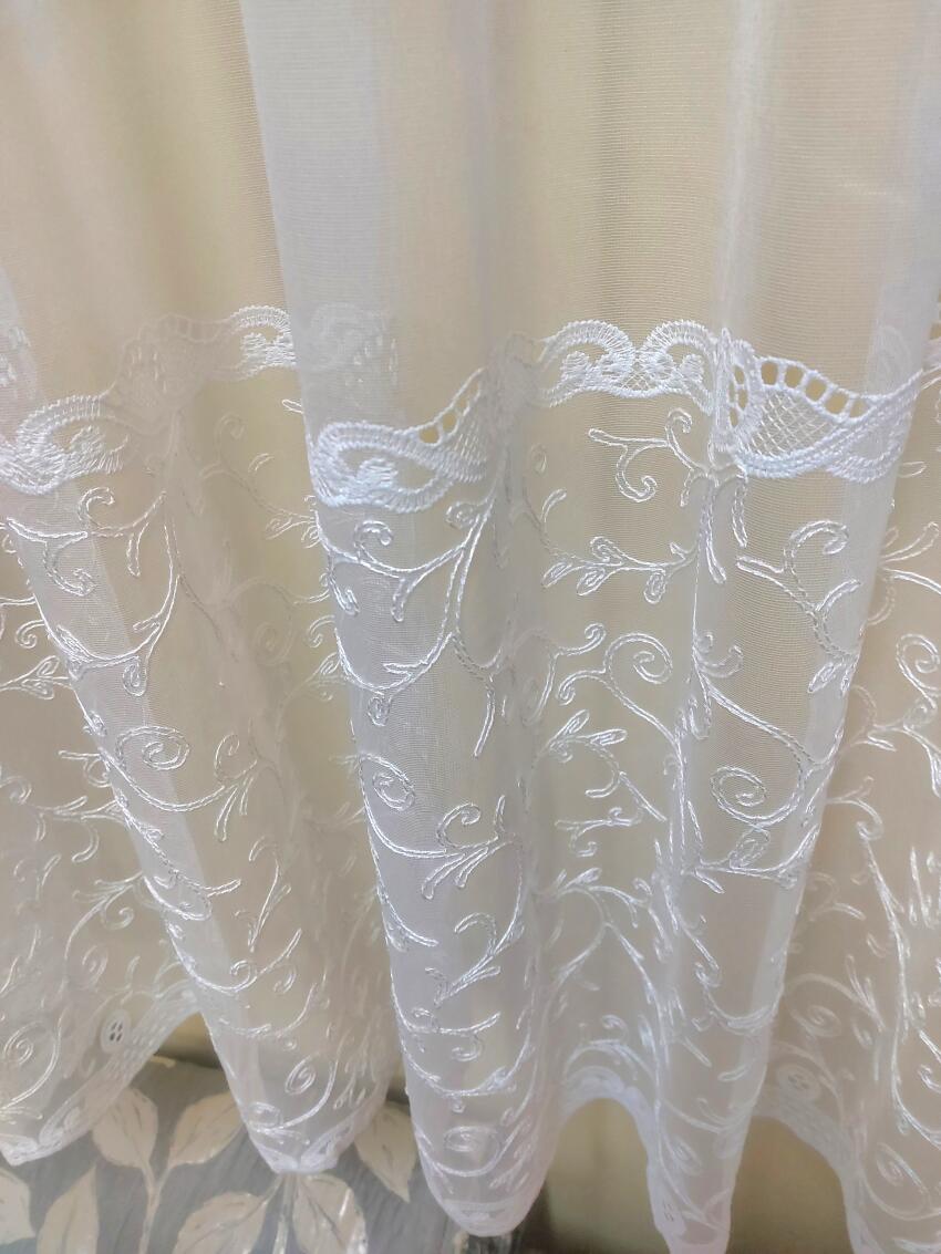 Firanka haftowana na 160cm. Wzór tylko na dole. Mierząc firanę od dołu do górnej krawedzi wzoru to mamy 50cm pięknego haftu. Naprawdę ładny wzór, bardzo oryginalny. Firanka pięknie się zaprezentuje w każdym pomieszczeniu. Nadaje się do pokoju, salonu, korytarza itp. Jest bardzo dobrej jakości, siateczka jest stabilna, mocna, nie rozciąga się. Firanka posłuży wiele lat. Materiał nie jest kryjący, wpuści światło słoneczne. Daje też ładną biel wewnątrz i na zewnątrz. Ciekawe wzornictwo przykuwa uwagę 😍 i tworzy fajny klimat. Polecam, nie będziesz żałować. Firanka warta tej ceny. Możliwość obszycia 🪡🧵 firanki za dopłatą. Uzgodnij 📞 606 - 876 - 397 doradzę 🙂Szczegóły