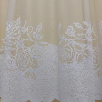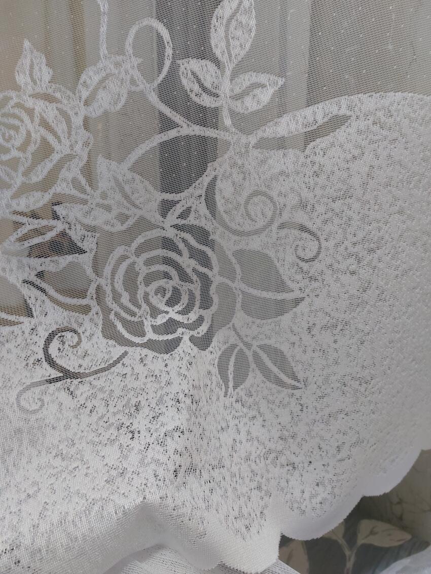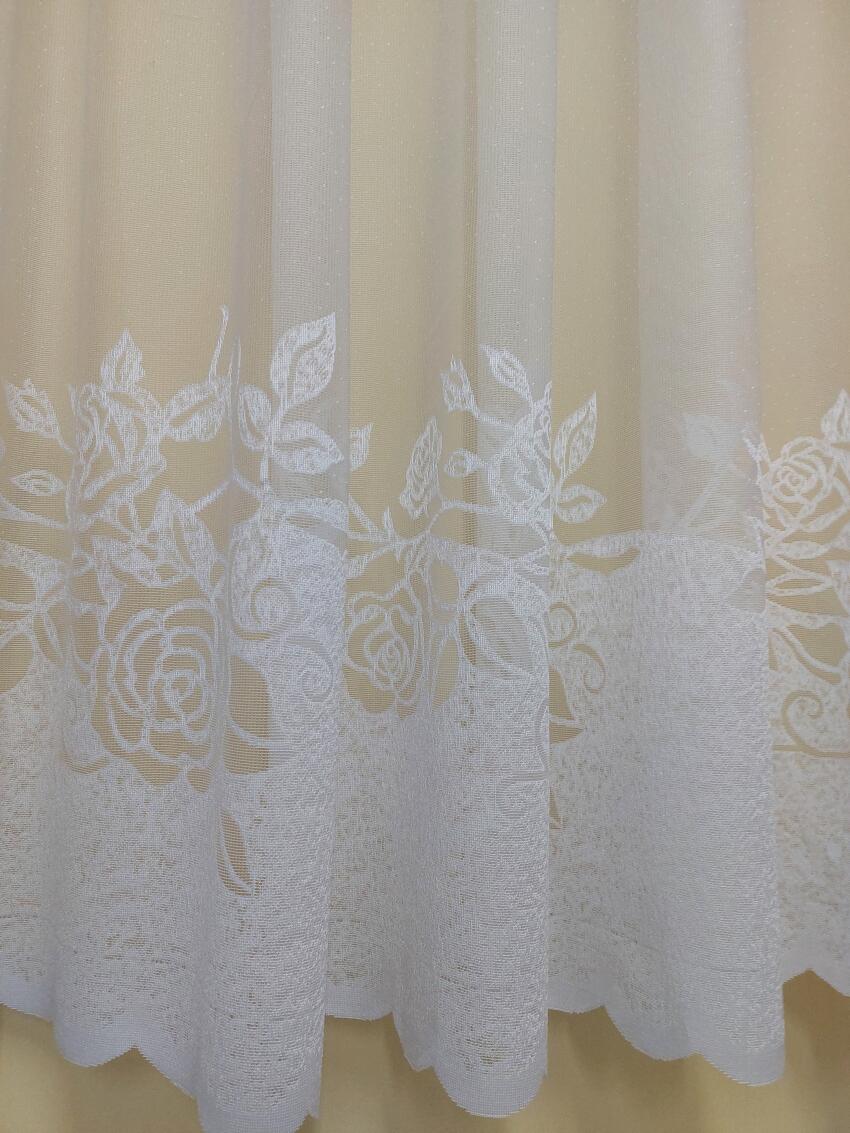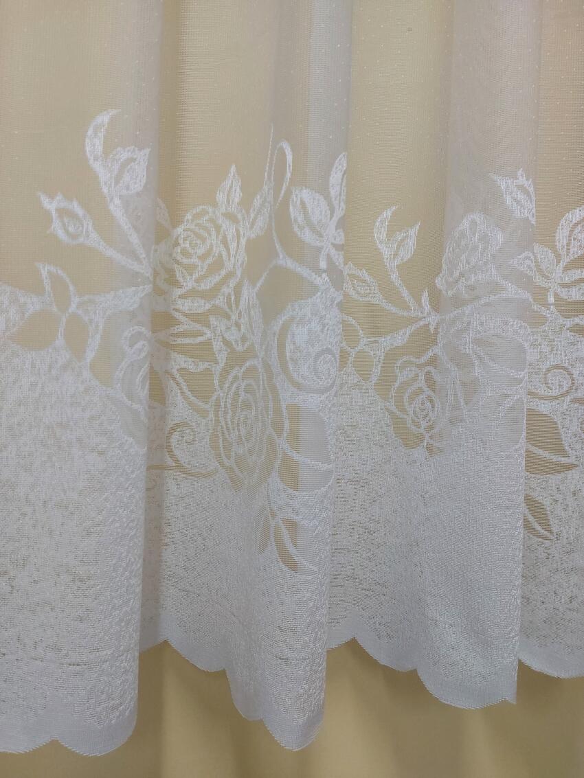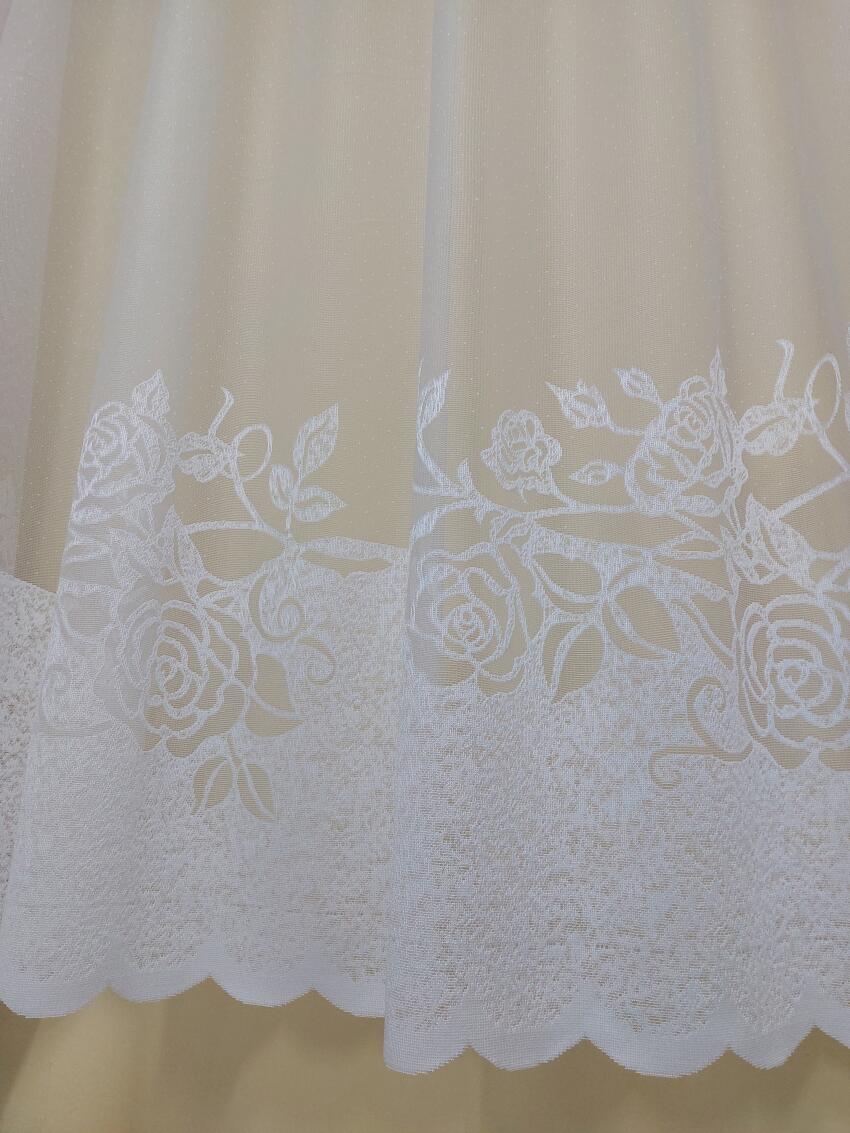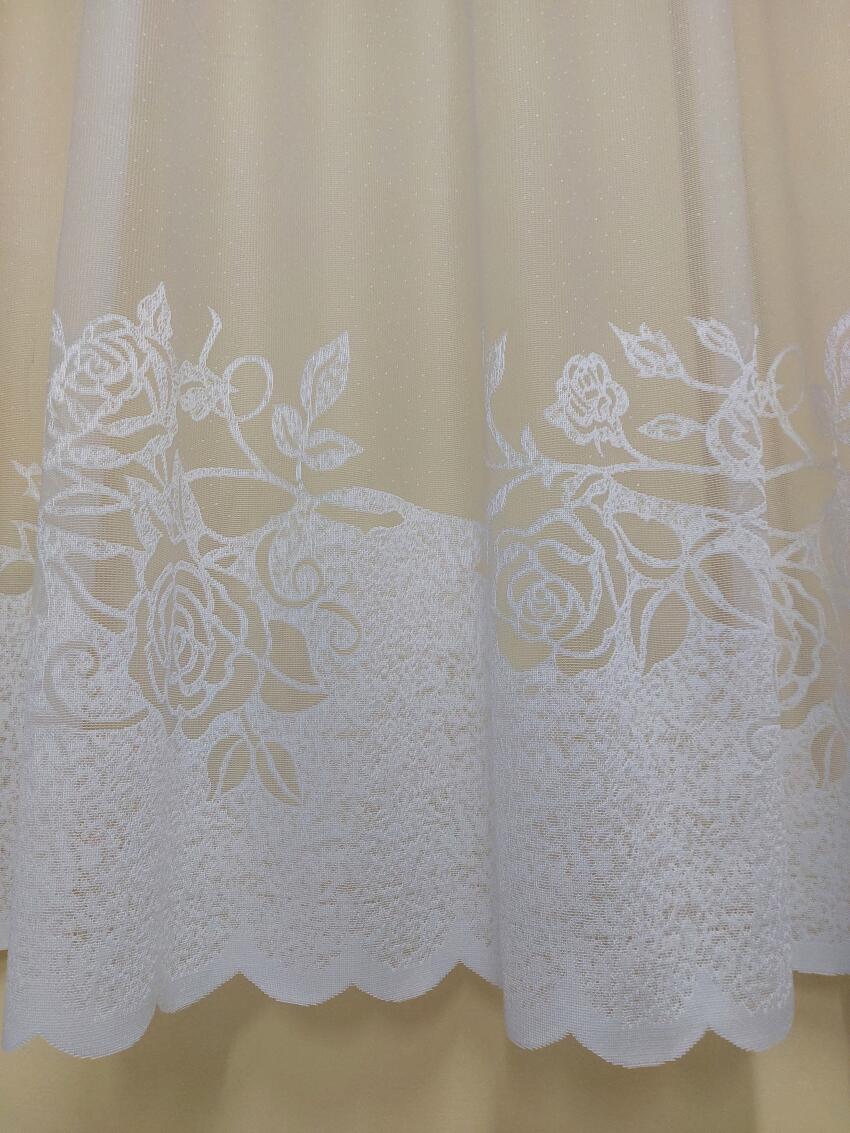 Firanka zakardowa na 160cm. Wzór tylko na dole. Mierząc firanę od dołu do górnej krawedzi wzoru mamy 44cm. Ładny wzór, kwiat róży, tylko na dole firanki. Tło to przejżysta markizeta, która po praniu nie wymaga prasowania. Ja upięłam ręcznie firankę prosto z wałka, nie prasowana. Zapewniam, że pięknie podda sie ułożeniu czy ręcznie czy na tasmie firanowej, jest lejaca, miękka. Pięknie się zaprezentuje w każdym pomieszczeniu. Nadaje się do pokoju, salonu, korytarza itp. Jest bardzo dobrej jakości, siateczka jest stabilna, mocna. Firanka posłuży wiele lat. Materiał nie jest kryjący, wpuści światło słoneczne. Daje też ładną biel wewnątrz i na zewnątrz. Ciekawe wzornictwo przykuwa uwagę 😍 i tworzy fajny klimat. Polecam, nie będziesz żałować. Firanka warta tej ceny. Możliwość obszycia 🪡🧵 firanki za dopłatą. Uzgodnij 📞 606 - 876 - 397 doradzę 🙂Szczegóły