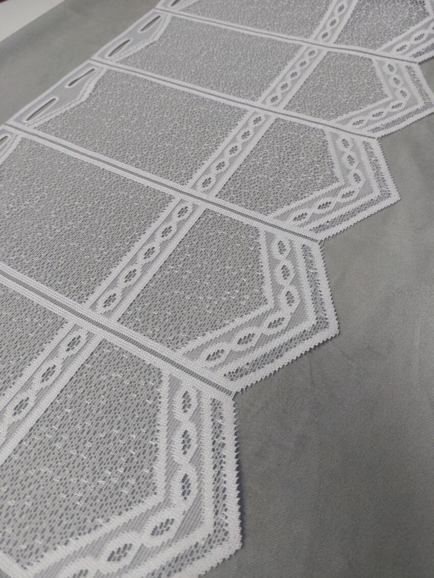 Firanka - zazdroska żakardowa, ma 29cm. wysokości od oczka na patyk zazdrostkowy. U góry są oczka, można założyć firankę na patyk zazdroskowy lub upiac na żabki. 1 panel z wzorem to 10,5cm firanki. Kupujesz ilość tych panelików np. jeśli chcesz uzyskać 1m firanki, to kup 10szt.= 1,05m. Może wisieć delikatnie marszczona lub w lini prostej, bez marszczenia. Firanka jest dobrej jakości, ładnie się układa. Firanka posłuży wiele lat. Materiał lekko kryjący. Daje ładną biel wewnątrz i na zewnątrz. Ciekawe wzornictwo przykuwa uwagę 😍 i tworzy fajny klimat. Polecam, nie będziesz żałować. Doradzę 📞 606 - 876 - 397 🙂 . Dostepne też o wysokosci 80cm. Jeśli potrzebujesz w komplecie.Szczegóły